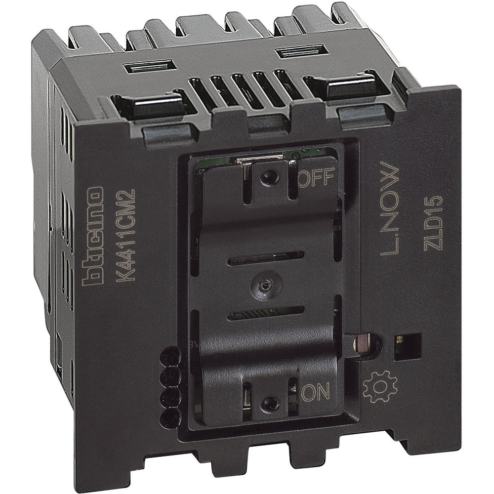 Con 3 funciones para el control de iluminación: interruptor, regulador y led de localización para configurar activación desde el APP. Fácil instalación, no requiere Neutro para reemplazo directo por un interruptor. Compatible con toda carga desde 5W hasta 300W. Alimentación del módulo 100- 240 Vac - tamaño 2 módulos. Se suministra con un compensador para una total compatibilidad con lámparas LED. Puede ser asociado a 1 o más comandos inalámbricos.